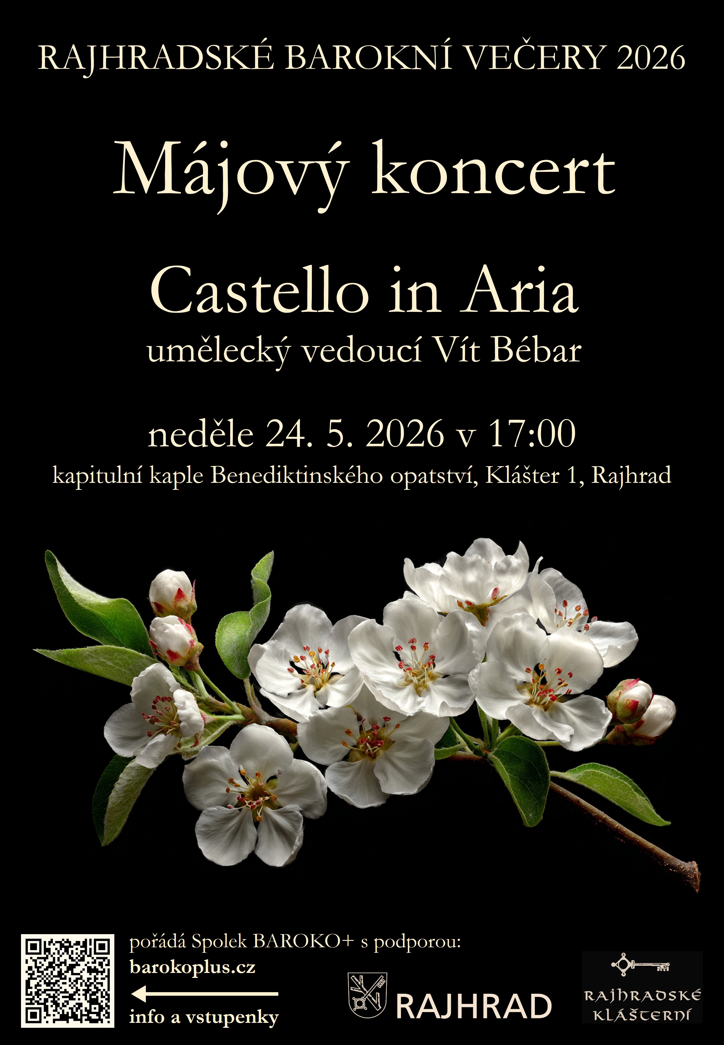 Spolek BAROKO+ si vás dovoluje pozvat na Májový koncert, který se bude konat v kapli Benediktinského opatství v Rajhradě. Koncert je součástí hudebního cyklu Rajhradské barokní večery 2026.