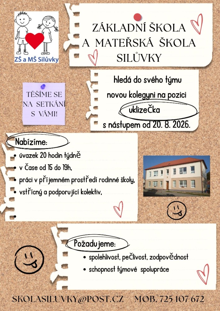 Nabídka práce: Uklízečka (Silůvky) Přílohy k článku Jméno souboru Popis Velikost siluvky-inzerat-uklizecka.jpg 247.8 Kb