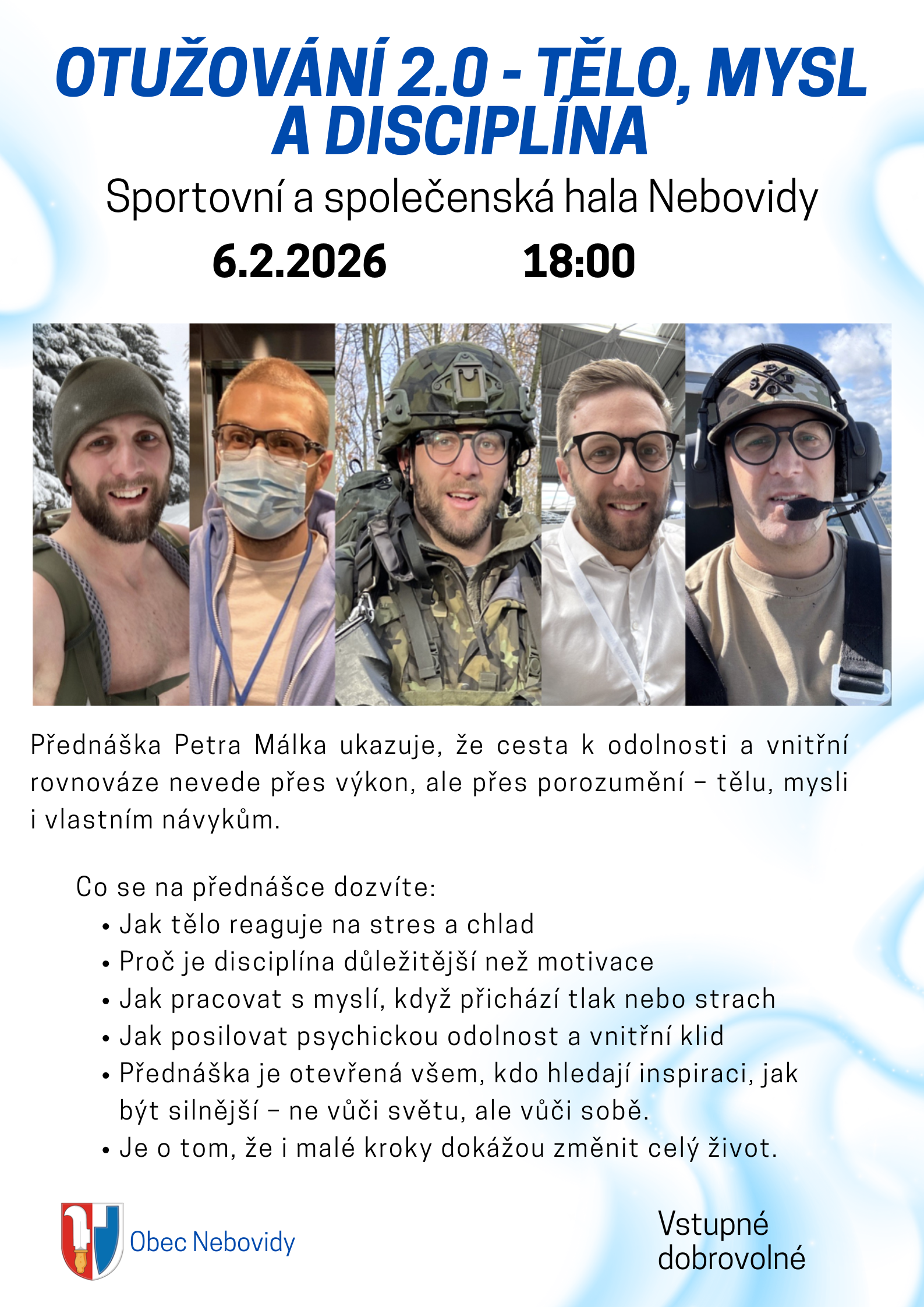 Na zajímavou přednášku Petra Málka zve obec Nebovidy.
